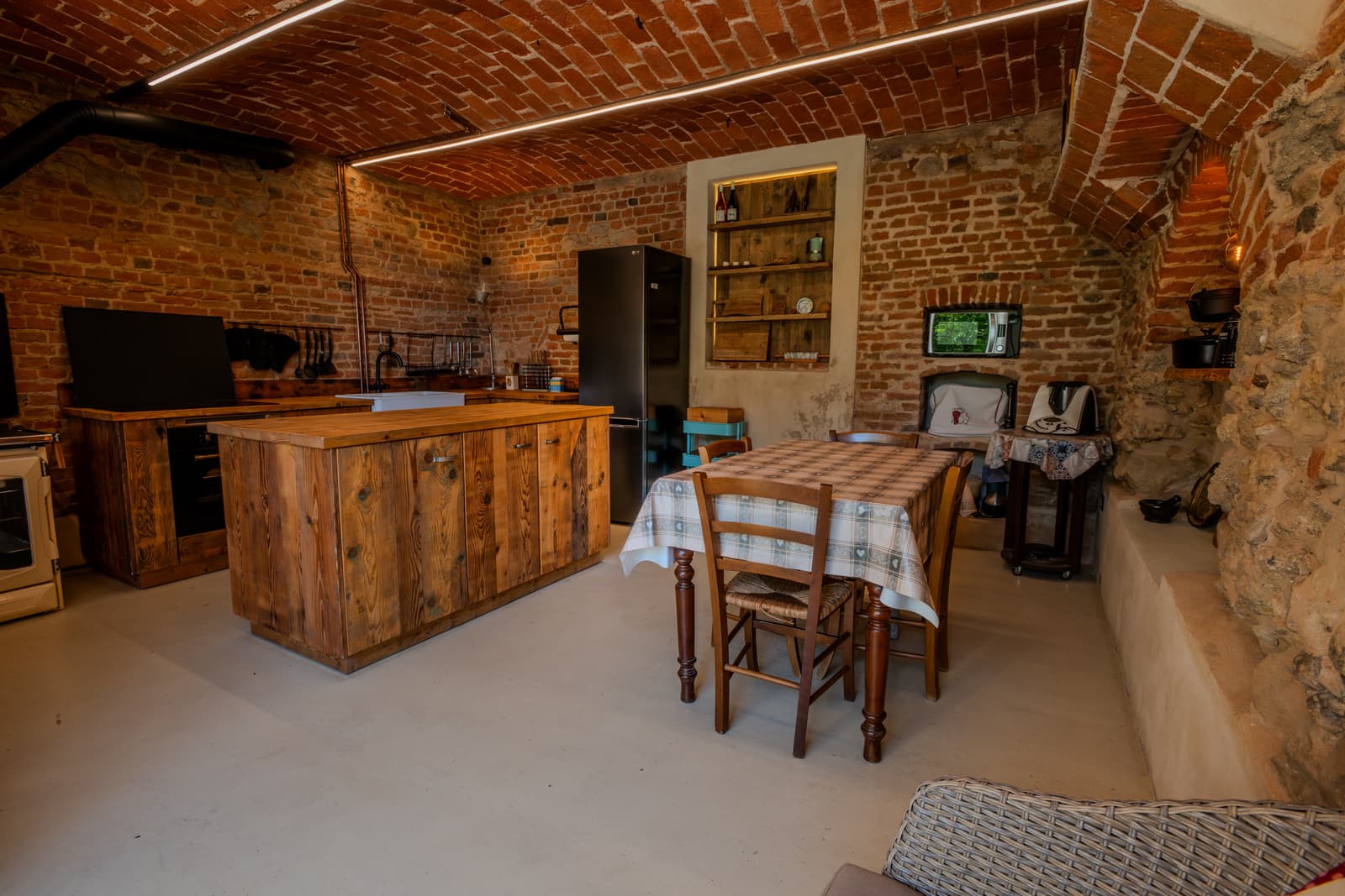 Di fronte all’abitazione principale, con affaccio sul cortile-giardino interno, un classico rustichetto indipendente, con al piano terra un portico e al primo piano un fienile.