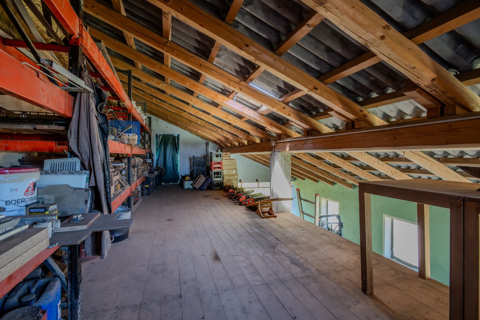 – al piano terra, con affaccio sul cortile posteriore, da una veranda, una legnaia, un w.c., un locale caldaia, un locale apparecchiature centrale termica e spazioso deposito macchinari ed attrezzi agricoli.