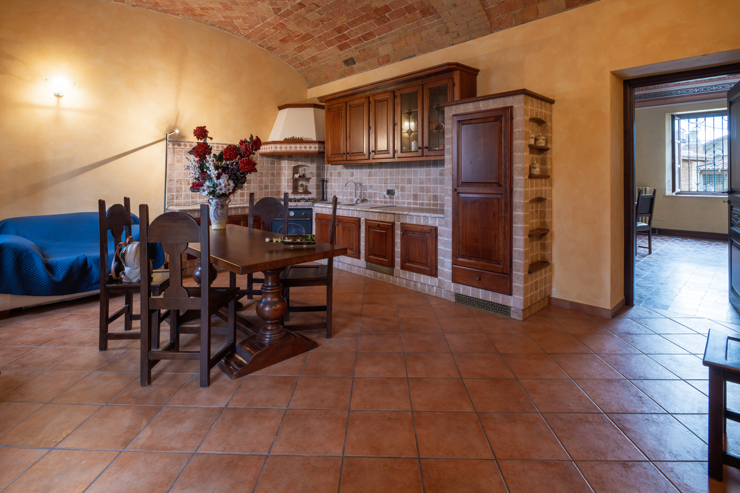 Dalla cucina si accede direttamente alla grande e caratteristica taverna/cantina interrata, impreziosita da una fantastica volta in mattoni a vista; spazio suggestivo e perfetto per cene o momenti conviviali.