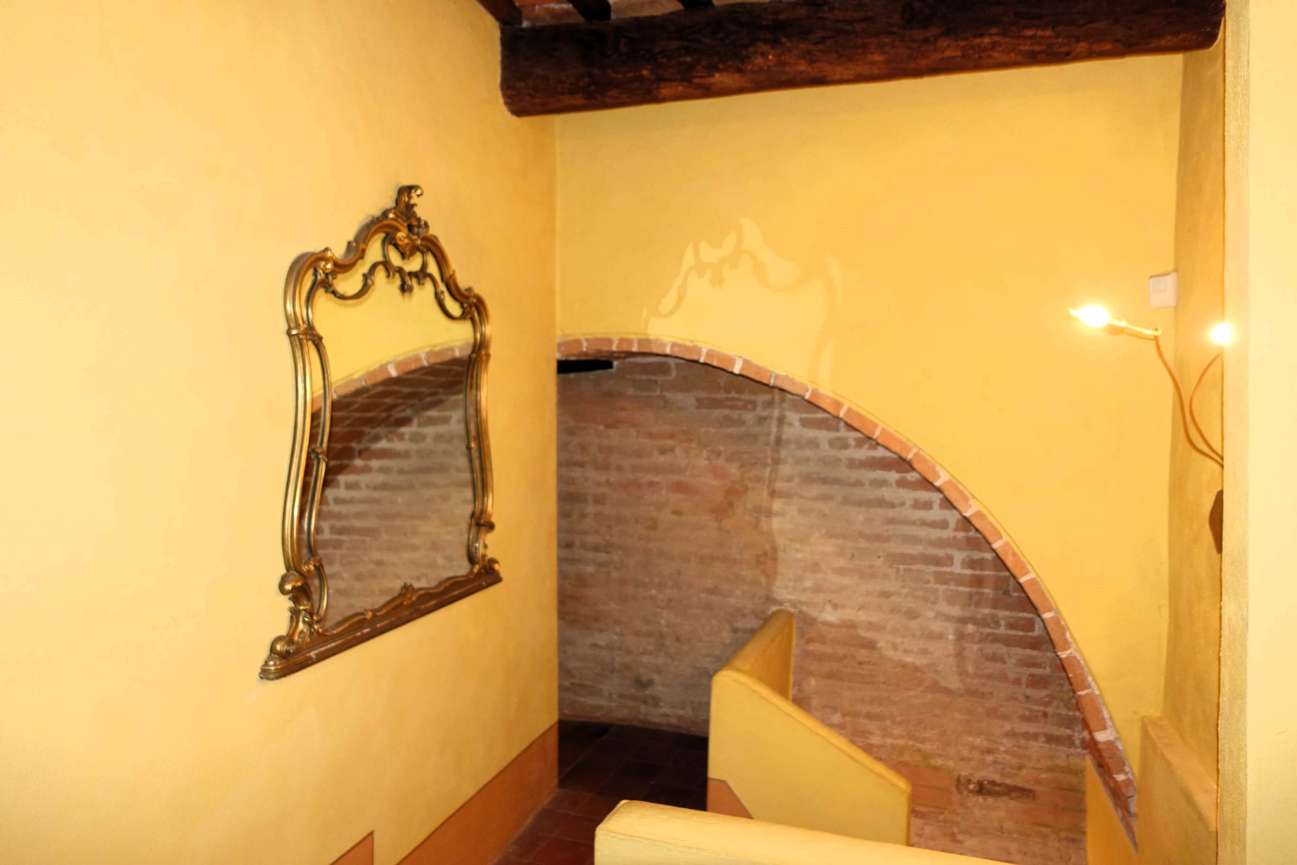 Al primo piano, un bagno e due camere da letto, una delle quali con balcone che si affaccia sulla corte comune e vista sulla piazza e sulla campagna!