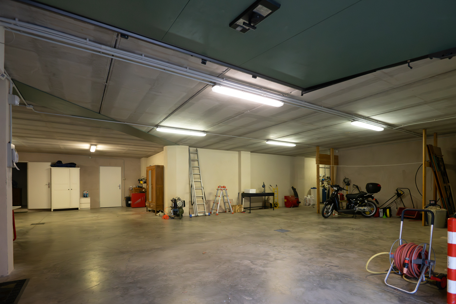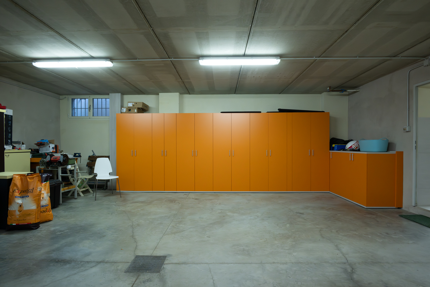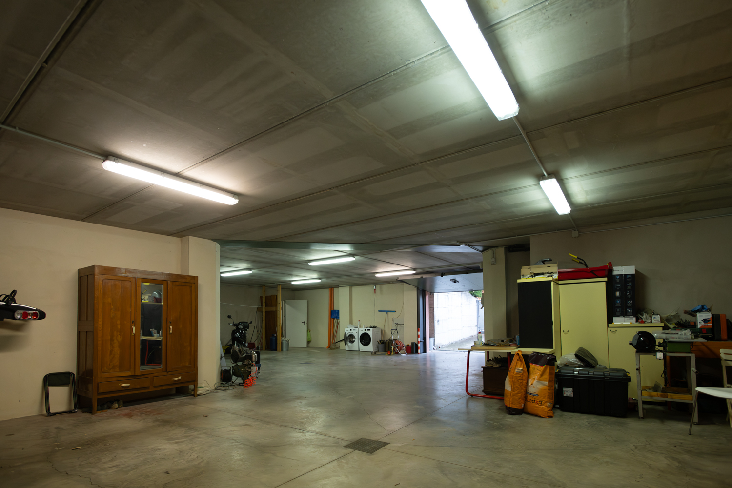 Il piano interrato è formato da un garage capace di ospitare comodamente fino a quattro automobili, centrale termica a gas-metano, un locale adibito a centrale fotovoltaico, un locale deposito, un locale cantina, un bagno e una capiente vasca di raccolta acque meteoriche.