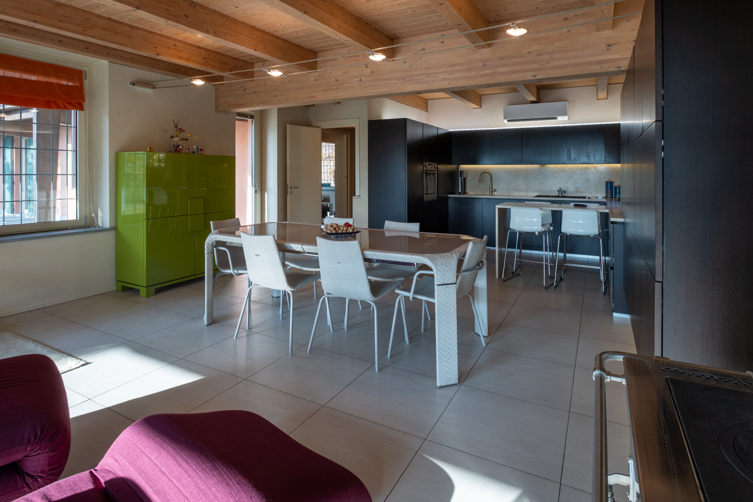 Il giardino è ideale per intrattenere gli ospiti durante le serate estive, offre il massimo agio grazie alla comodità di raggiungere il verde direttamente dall’ariosa cucina.